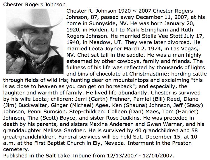 M: 7-17-1940 Chester Rogers Johnson B: 20 Jan 1920 D: 11 Dec 2007